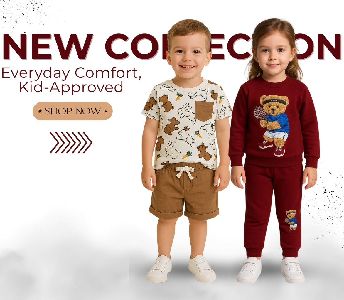 Keep your kids warm and stylish this season with our cozy Winter Collection for toddlers and kids. Featuring cute cartoon characters and crafted from soft, skin-friendly fabrics, these outfits ensure maximum warmth and comfort. Perfect for playdates, school, or indoor lounging, these charming sets are designed to make your child stand out. Grab these must-have winter essentials today and give your kids the gift of style and snug comfort. Shop now before stock runs out!